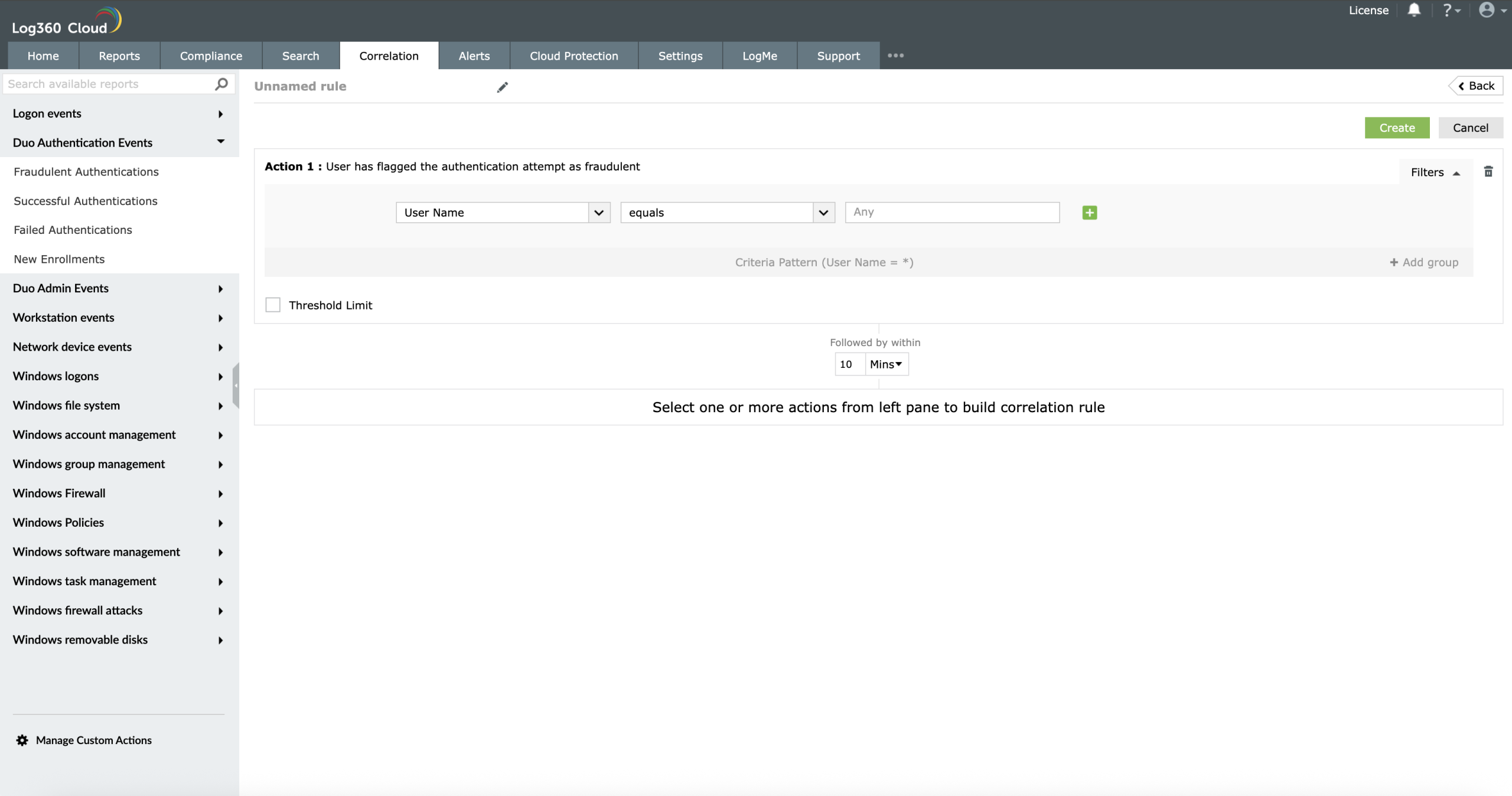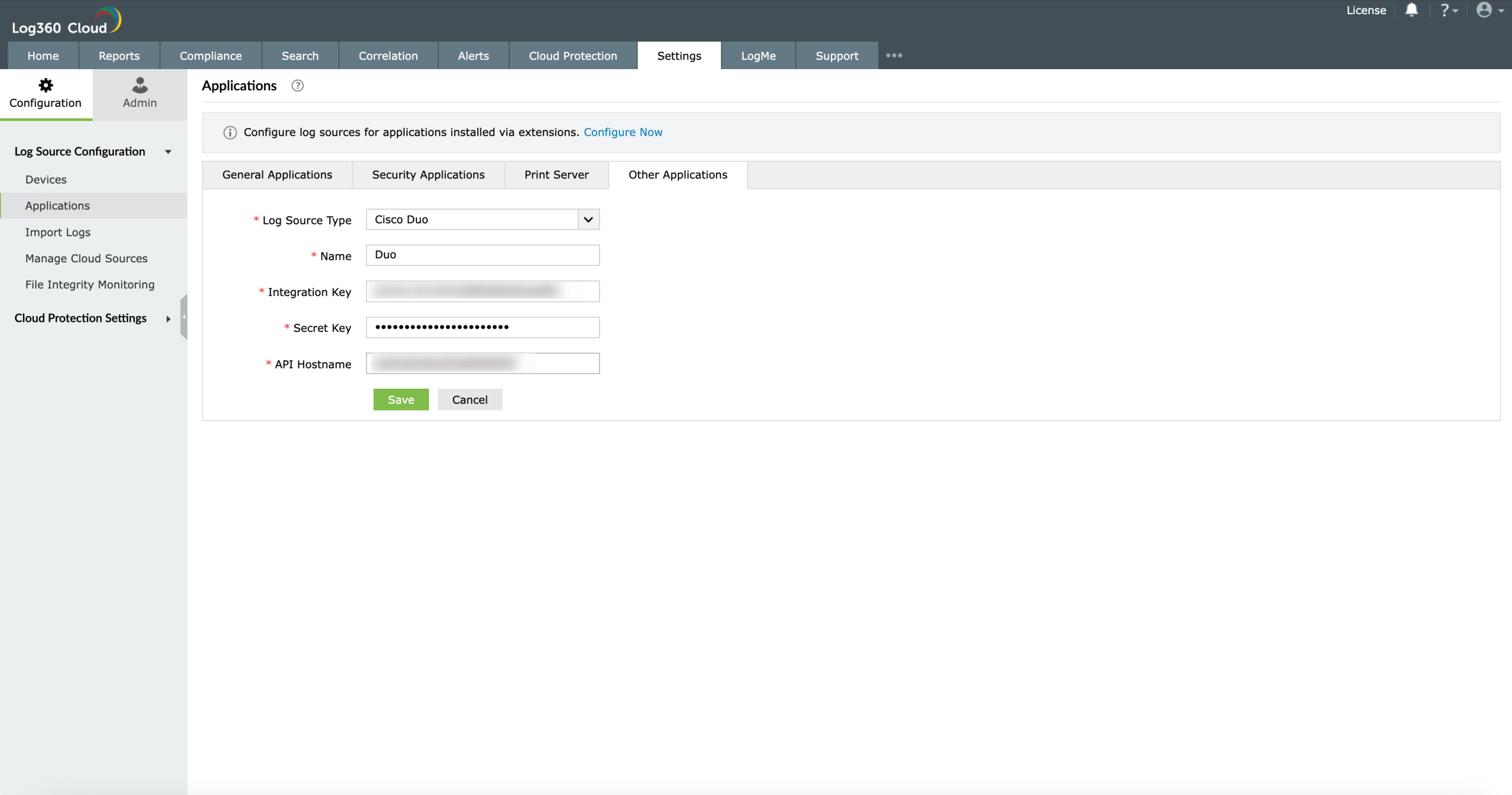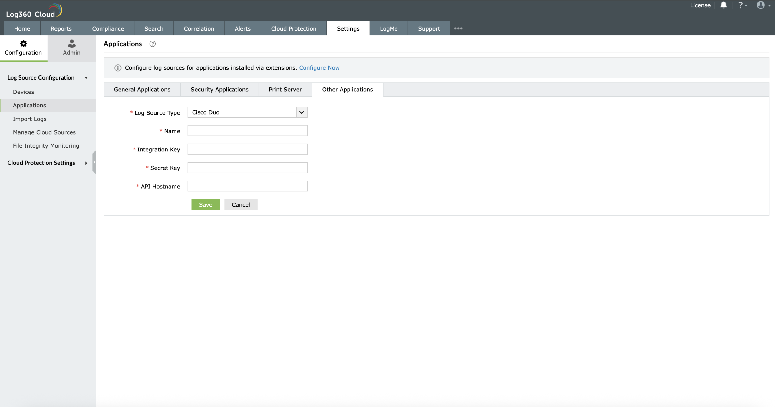In the Log Source field, click the add button and select the configured log source for CiscoDuo.