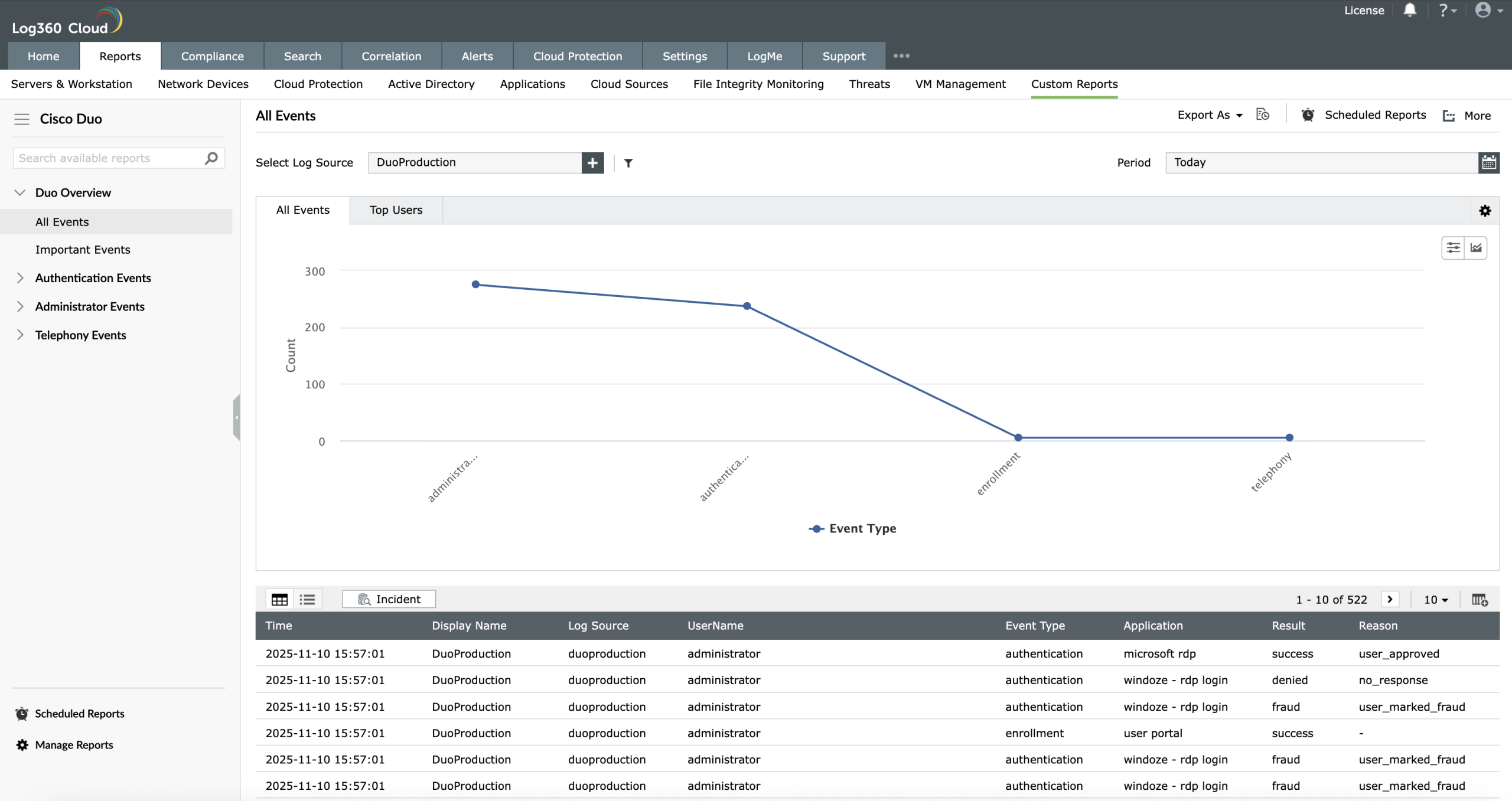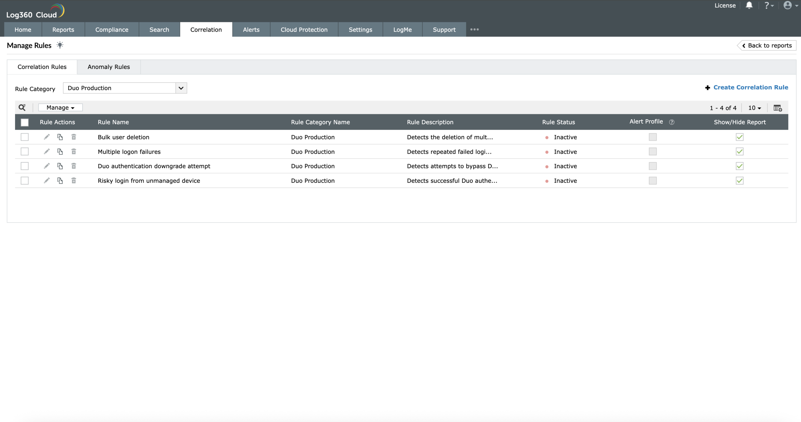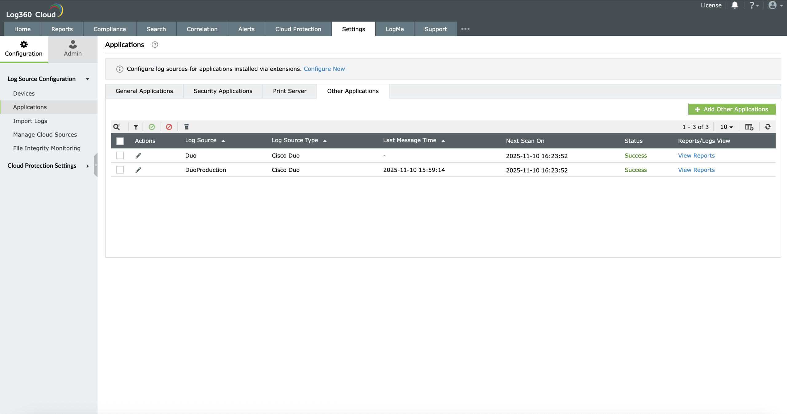 Log360 Cloud will retrieve logs at regular intervals and display them under