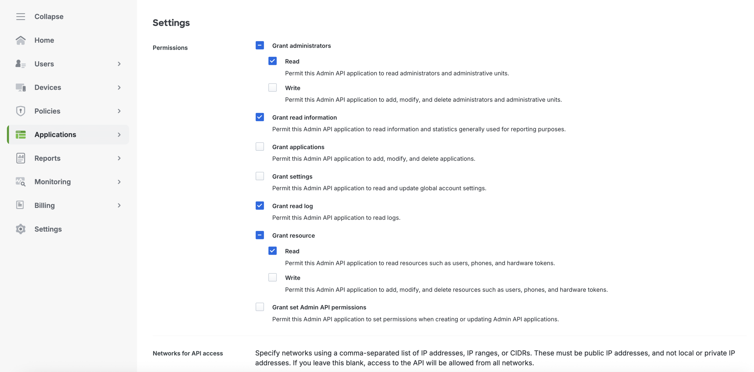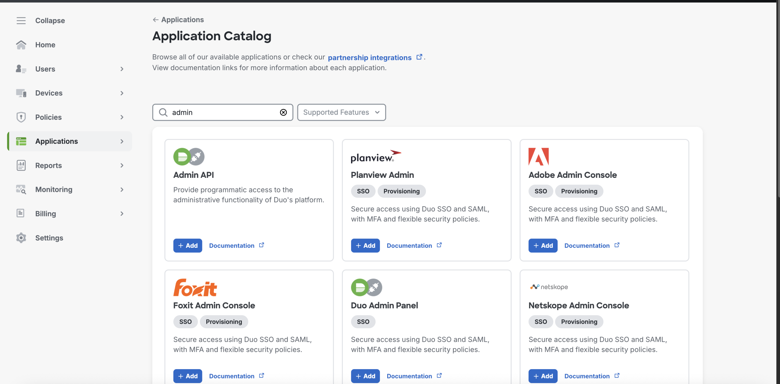 Only admins with the Owner role can create new Admin API applications in the Duo Admin Panel.